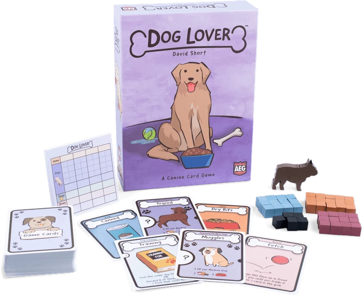 InΒ Dog Lover, you fetch cards, collect bones, and gather food for your lovable dogs. You rescue them from the shelter, train them on new tricks, and cherish their unique traits. The player who takes care of their beloved dogs best will score the most victory points and win!