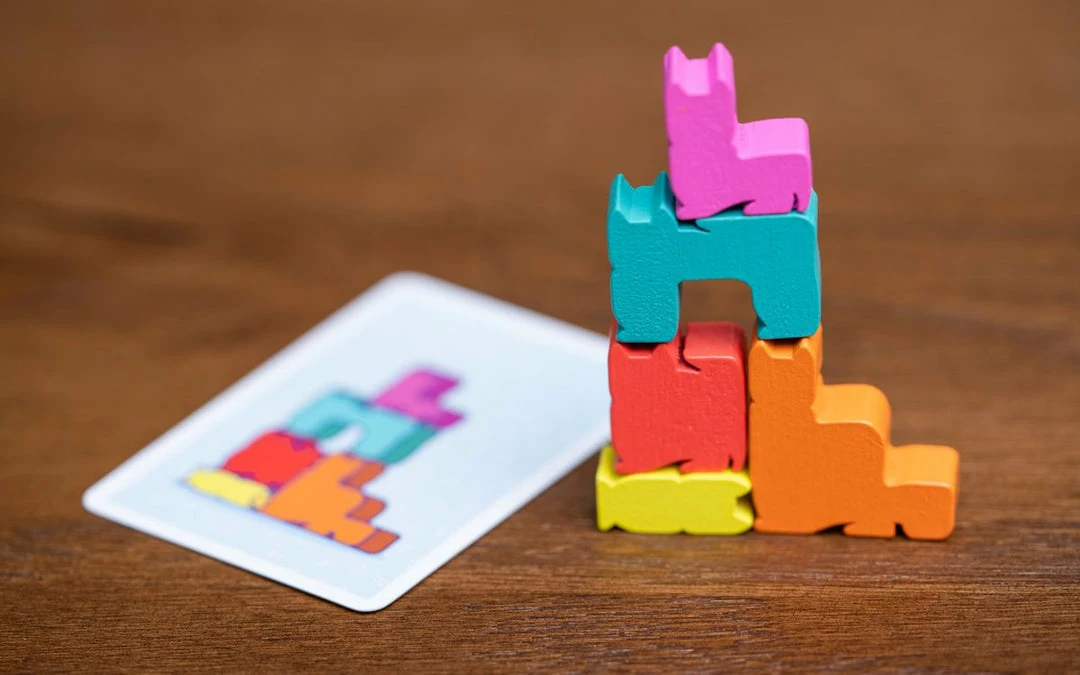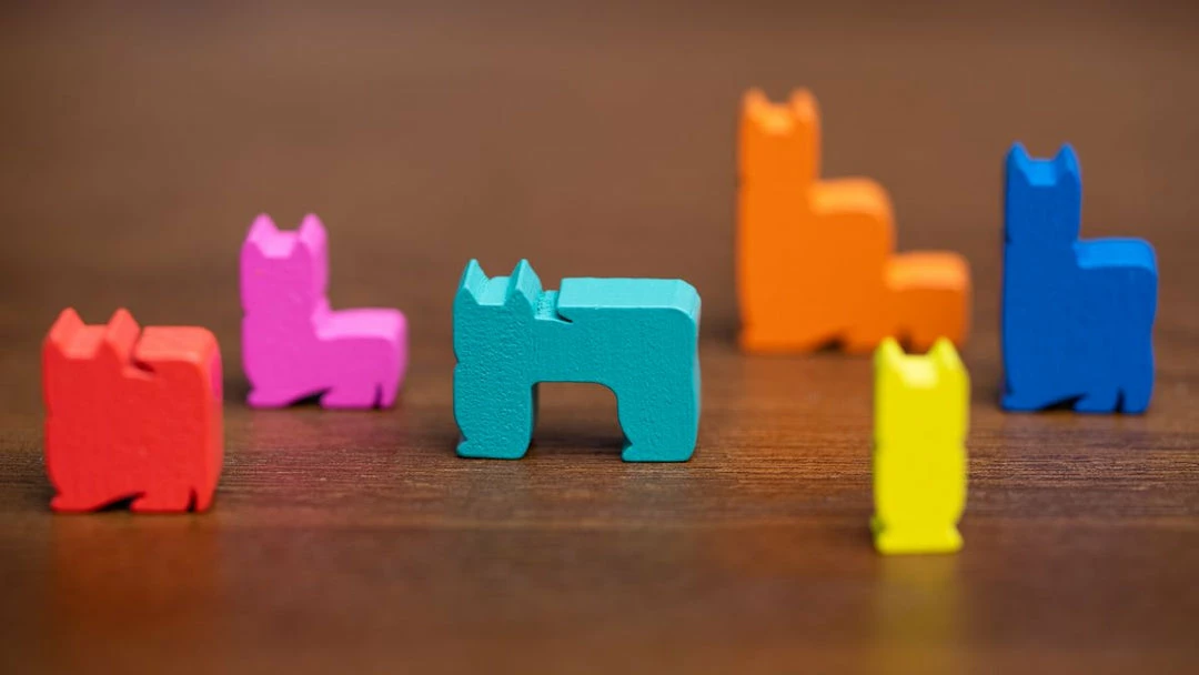 InΒ Kittin, you’ll flip a card then all players will compete in a simultaneous fast-paced race to grab the cat meeples and match the arrangement. The player who is quickest at grabbing and best at stacking will win the cat-stacking race!
