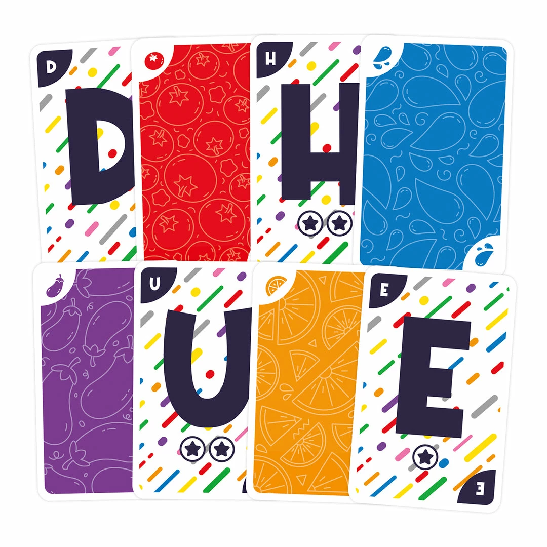 Everybody is playing their cards at the same time. There will be a pile of coulored cards on the table, next to a pile with letters. In order to get rid of a card from their hand, a player must say a word that starts with the letter and matches the color of the card that they wish to play, combining that with the card that is not getting covered. For example, in order to play a “B” card next to a yellow card you could say “Banana!”. Or if you want to play an orange card next to an “L” you could say “Lion!”. Communication is vital to being successful in this addictive co-op card game.