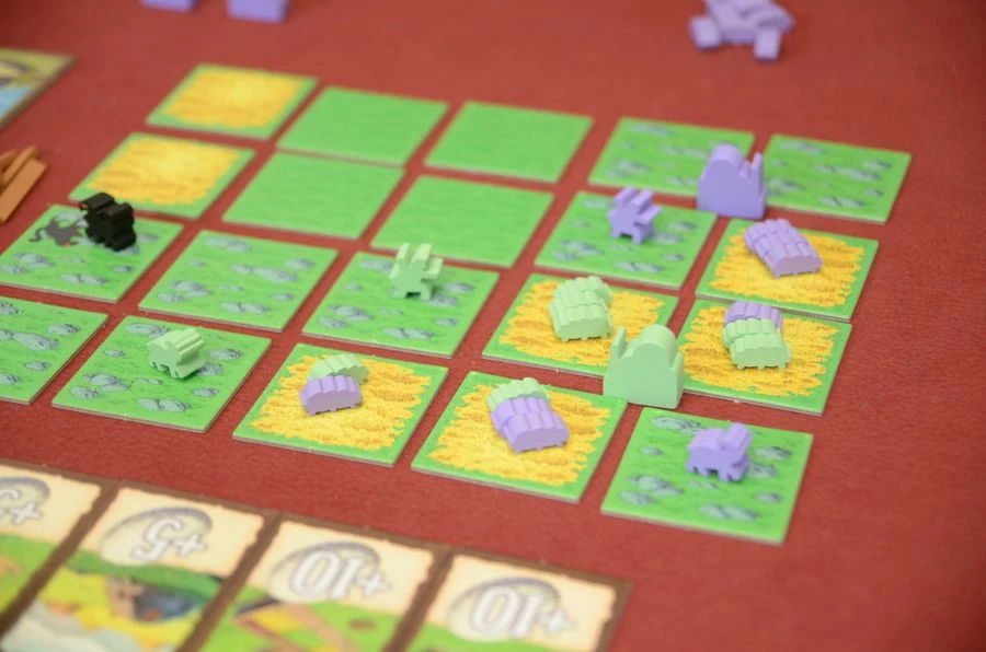 SilkΒ is a gateway game into area control and worker placement systems. Players have to move their silkworms to the optimal spaces so they can feed on the best grass available, while pushing the other players’ pieces into less desirable feeding grounds. In this game, players roll dice in order to determine which actions they are allowed to perform during their turn. There are six types of actions available: breeding more silkworms, moving the shepherd or their mastiff, building fences or farms, moving the ookami monster around the board, and β most importantly β getting your silkworms to feed. When silkworms feed, they generate a number of silk points, depending on the type of terrain they are standing on at that moment. These points can be used to modify the outcome of a dice roll, all while keeping in mind that the player with the most silk points at the end of the game wins!