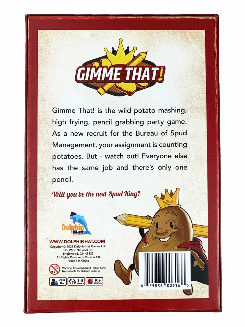 Gimme That!Β is the wild potato mashing, high frying, pencil grabbing party game!
