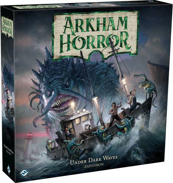 Under Dark Waves is a new large box expansion for Arkham Horror, taking your investigations beyond the town of Arkham to the other ill-fated towns of Massachusetts.