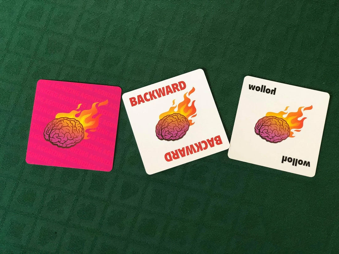The second round of the game is similar to the first, except that the rule for eligible cards to play is reversed: now a card may be played only if its text describes the qualities of the card in the center. The player with the fewest cards remaining wins.