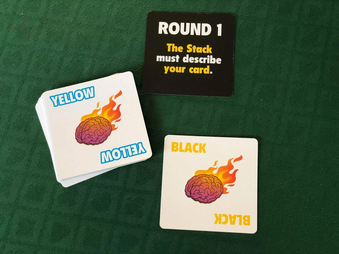 In the first round of the game, players are dealt an equal number of cards, and a card is turned face-up in the center of the table, forming the base of a pile. Players then race to find a card in their deck that the center card describes, and place this on top of the pile, changing the center card. Play continues until one player runs out of cards.