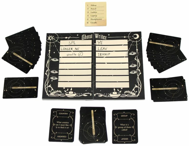 On a turn, instead of handing over question cards, you can attempt to guess the answer β and to do so you write like the spirits, one letter at a time. If you write an incorrect letter, the spirits will stop you, marking out your error, with your partial guess giving the other team more information. If you guess the entire word correctly, you win!